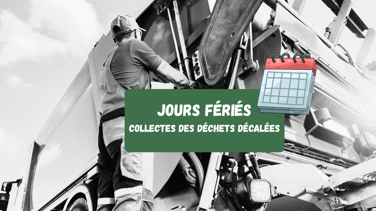 Lorsqu’un jour est férié dans la semaine, toutes les collectes, c’est à dire celles des sacs noirs comme des sacs jaunes, sont décalées d’un jour à partir du jour férié, dans toutes les communes et jusqu’à la fin de la semaine (samedi inclus).