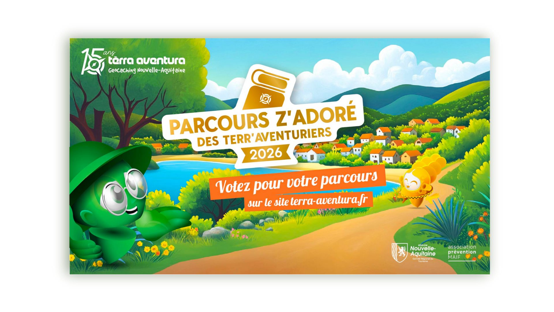 Organisé par le Comité Régional du Tourisme de Nouvelle-Aquitaine, ce concours invite les joueurs et les habitants à élire leur parcours Tèrra Aventura préféré parmi 12 parcours emblématiques, spécialement sélectionnés à l’occasion des 15 ans de Tèrra Aventura.