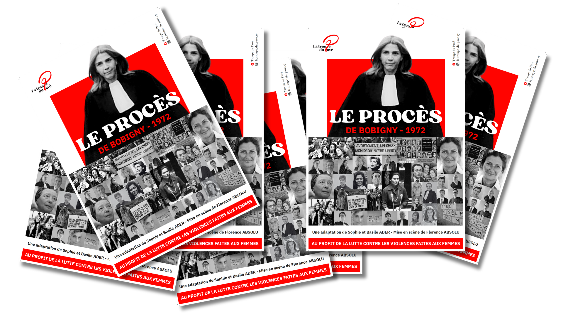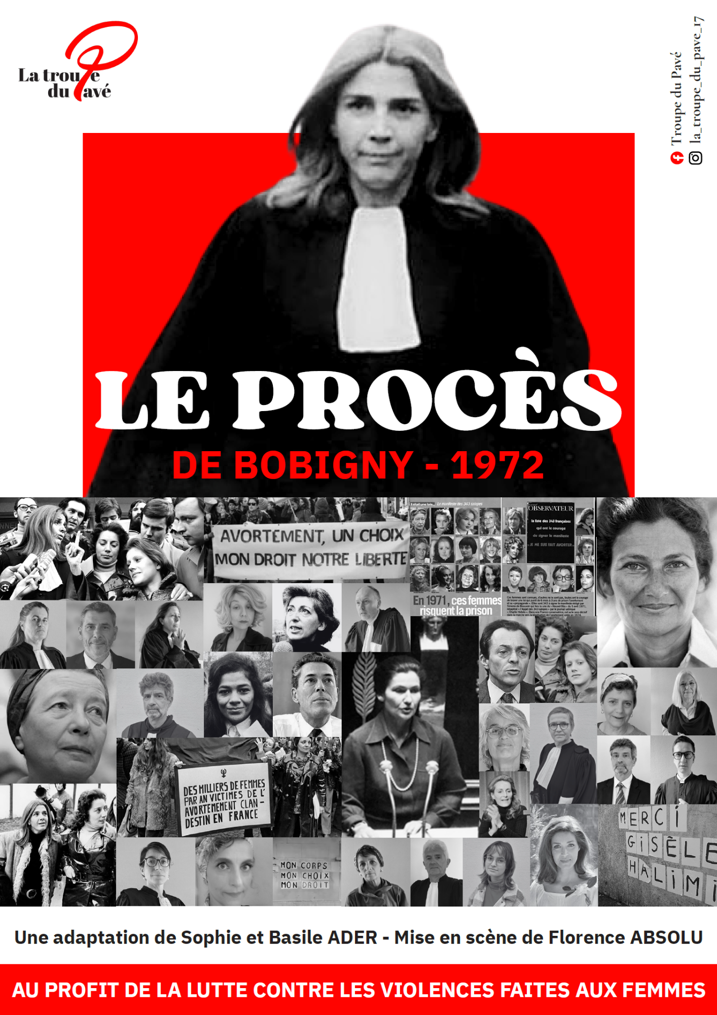 La Troupe du Pavé est composée d’hommes et de femmes tous bénévoles qui jouent des pièces de théâtre engagées afin de rassembler des fonds pour la lutte contre les violences faites aux femmes. Depuis novembre 2024, La Troupe du Pavé présente le procès deBobigny dans tout le département au travers de la pièce éponyme écrite par Sophie et Basile Ader sur la base de la sténotypie du tribunal de l’époque.