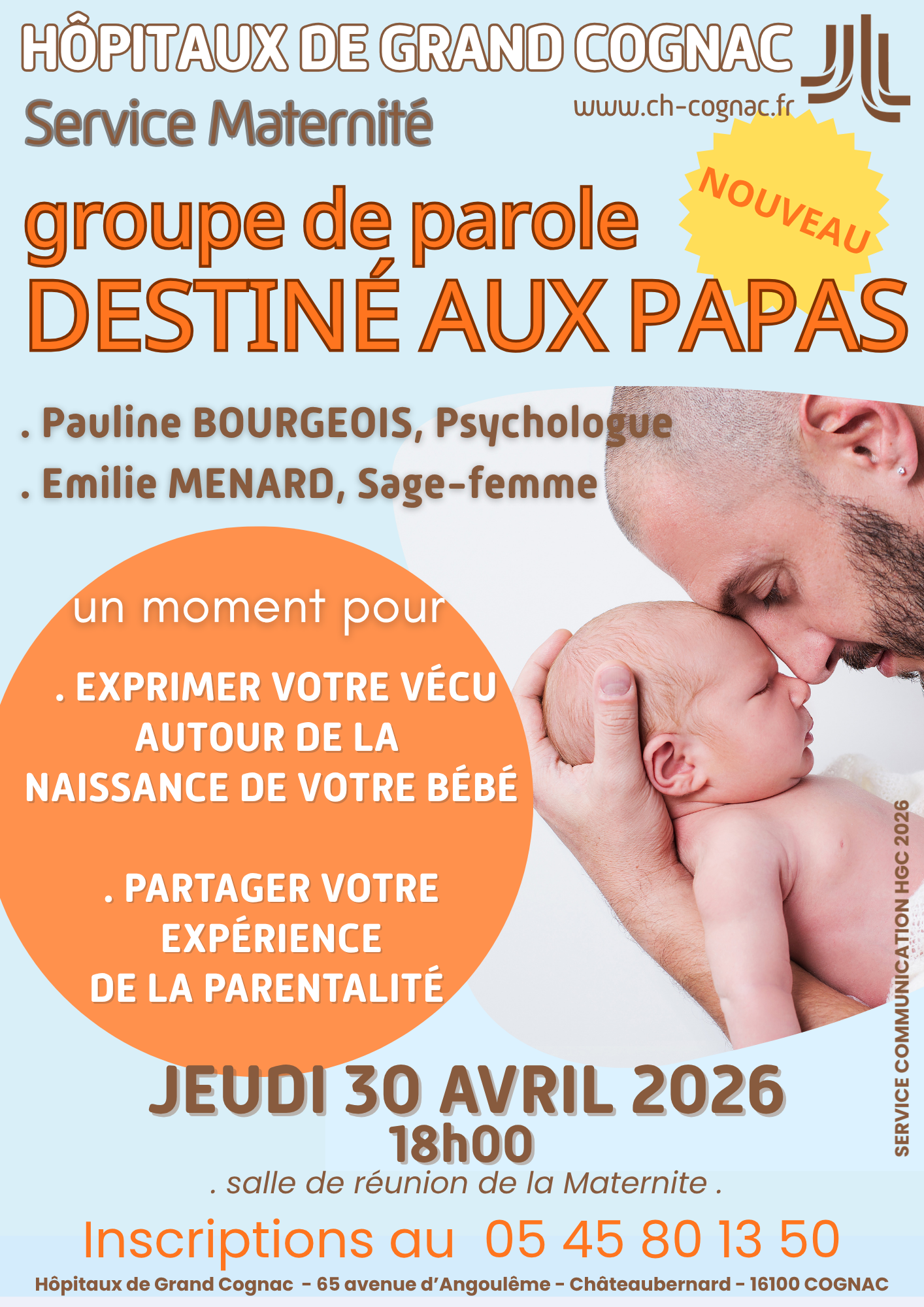 Adresse : Hôpital, 65 avenue d’Angoulême, salle de réunion de la maternité 16100 Cognac